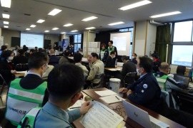 発災直後(フェーズ1)と発災後24時間経過以降(フェーズ2)に区分して行い、災害対策本部と実働訓練会場および避難所開設・運営訓練会場との情報伝達・共有・並びに対応要領を確認する訓練を行い、16機関202名が参加した。