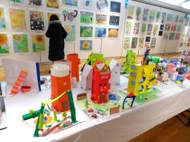 それぞれの学校で図工・美術の貴重な時間を活用して、様々な作品作りに取り組み、会場の作品はどれも子ども達の感性が漲った生き生きとした数々の作品を楽しむ事ができる。