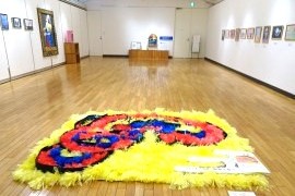 多目的ギャラリーの中心部に展示したポンポンアート「登り龍」は、2025年度朝里中学校前期生徒会執行部が製作した文化祭のために企画した作品で、文化祭で使ったナイロンテープのポンポンで「みんなの思いを1つに」をテーマに「登り龍」を作った。天に向かって勢いよく上昇することから「幸運を運んでくる」という意味も込められているという。