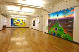 今回の参加校は、銭函中学校・朝里中学校・桜町中学校・望洋台中学校・松ヶ枝中学校・菁園中学校、西陵中学校、北陵中学校の文化祭で展示した巨大な壁画など79点を展示している。