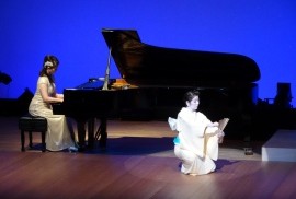 箏とピアノ、ピアノと日本舞踊、日本舞踊と箏が名曲にのせてコラボレーションし、その合間には、ピアノ、箏、日本舞踊のソロを盛り込み、ひとりひとりの実力ある演奏演舞も披露した。