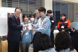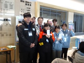 OKOBO団長・イム・ジュヨンさん(大学3年生)は、「昨年初めて参加し、2回目。日本人からの温かい気持ちに恩返ししたいと団長として参加した。今回の激励品はとてもありがたく、これからのOKOBOのために使いたい」と、感謝した。