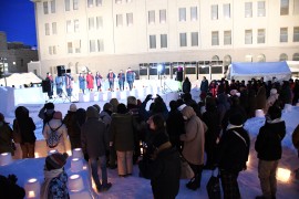 迫俊哉小樽市長は、「国際色豊かにこのイベントが開催され、市長としても嬉しく思っている。小樽雪あかりの路は、詩人伊藤整の詩集のタイトルでもあり、小樽ゆかりの作家小林多喜二は、小樽のまちを北海道の心臓のような都会と表現した。北海道の心臓の一角でこのイベントが開催され、本当に雪あかりの路は小樽に相応しいイベント。これからも大切にしたい。お越し頂いたみなさんには、幻想的な風景に合わせて歴史も感じとってもらいたい」と、述べた。
