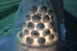 参加者同士が知恵を出し合い、今年初めて雪の妖精シマエナガが登場、雪で作ったまるい顔のシマエナガの黒いまるい眼は、黒千石大豆を使用し、黒いフエルトを切り抜ぬいた口を付け、2つと同じ顔がなくどれも愛らしいシマエナガが完成した。