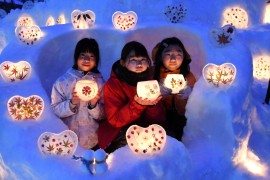 手宮中央小の小野さん姉妹(小4・小5)と加賀さん(小4)は、「今年はレベルアップしていて綺麗。シマエナガや雪だるまを作ったり、ロウソクを点灯したりして楽しかった。来年もお手伝いしたい」と、話していた。