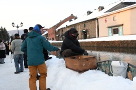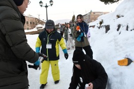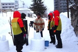 宮城県仙台市在住の千葉洋さんは、ボランティアとして19回目の参加、手宮線会場の市立小樽美術館前広場からスノーオブジェ、スノーキャンドルの広場に配置され、ボランティアのまとめ役を任されている。