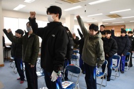 選手宣誓では、北稜中2年生の斎藤永真さん(生徒会長)と、同じく小笠原道さんは、「地域の安全な暮らしを守るため、全力で雪かきに励む事を誓う」と声を合わせて宣言した。