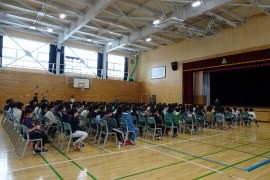 小樽市立山の手小学校(花園5・草島拓也校長 全校児童346名)は、ヒグマが市街地まで下りてきたり、ヒグマ目撃事例が増えている現状を踏まえ、自分の命を守る学習を警察と連携して、ヒグマ被害対策講習会を、3月5日(木)同校体育館で、10:25からは低学年、10:50からは高学年を対象に開いた。