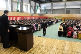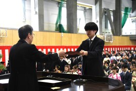 今年度で退任が決まっている穴沢学長は、「社会に出ると大学時代以上に学びが必要となる。職業に直結する学びだけではなく、人格、教養を高める学びも不可欠。常に高い目標を持ち、それにむけてたゆまない努力を継続して欲しい。社会は常に変化していて、変化の対応力は継続的な学びからのみ得られるもの。みなさんは限りない可能性を秘めている。若さは力、自分自身を信じ、力強く未来を切り開いて下さい」と、告辞を述べた。