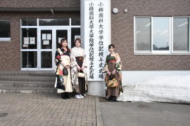社会情報学科を代表して学位記を受け取った山内我空さんは、「自分の住んでいる地域と全く違う環境の小樽に住み毎日が新鮮だった。情報系を中心に学び、ここでの4年間の成果は、就職先が東京の情報系の会社なのでこれから活かせると思う。積極的にいろいろな事に挑戦できる社会人になりたい」と、話した。
