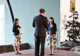 東京から来たファンが見守る中笠井さんは、「数えきれないほどの魅力ある小樽が大好きになるよう1つでも多く届け、小樽のまちが愛される町になるよう頑張りたい」と、述べ、平山さんは、「国内外に小樽をアピールし、新たな視点から魅力を伝えたい」と、決意を新たにした。
