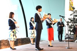 西條会長は、「兼平君は、初の男性で希望と期待を集め、潮踊りが美しくしっかりと踊り注目を集めた。三浦さんは、明るくて場を和ませる人、趣味はプロレス。この1年間、活動してもらい感謝する。コンシェルジュを交代しても応援隊のひとりとして活躍してもらいたい」と、労いエールを贈った。