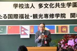 「多文化共生で強く優しい未来を創る」という志をもつ多国籍の学生がつどい、多文化共生と地域振興の理念のもと、介護福祉学科19名と観光学科72名の合計91名(男70名・女21名)が入学し、共に2年制で、社会に貢献できる実践力と優しさを兼ね備えた国際人材を育成する。