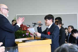 入学式では、入学生の名前が読み上げられ、入学許可宣言の後、学生を代表した4名が誓いの言葉を述べた。