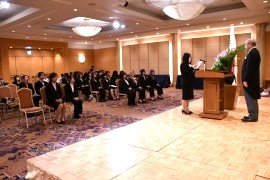 大聖学校長は告辞の中で、「人間性豊かな歯科衛生士として地域の保健医療に貢献できる医療人を養成する。愛と知と技を備えた」と、教育理念に触れ、「60期生のみなさんには、愛と知と技の3つの文字が指し示す通り、愛情豊かに、十分な知識と技術を身に付けた歯科衛生士を目指してもらいたい。」と、激励した。