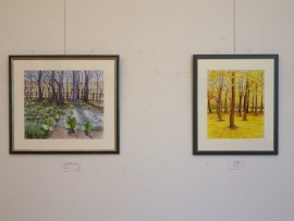 創立会員の森田さんは、水彩と色えんぴつを画材に風景や静物など6点を出展、余市のゴリラ公園の水芭蕉は、この季節にぴったりの風景で注目が集まる。