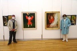 桑原代表は、教室での画題を毎月1枚ずつ12枚を1年分出展し、油彩で丁寧に描かれている。古平祭りの猿田彦火渡りの様子も描き、「冬は休みとしたが、大きな作品も出展し枚数も多く頑張った会員の力作を、ぜひ、この機会に会場でご覧いただきたい」と、来場を呼び掛けた。