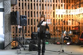 全バンドの発表が終わると、イベントの歴史紀行のタイトル通り、小樽案内人でもある斎藤実行委員長による歴史的建造物について語った。
