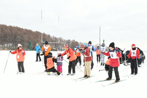 広大なグランドに出て準備運動を済ませた参加者は、レベルに合わせた班に分かれ、担当指導者について1周800mほどのコースを滑った。