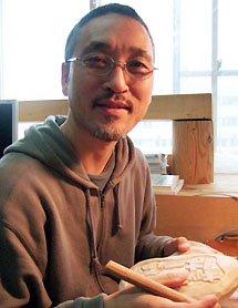 小樽に移り住んですでに11年。ユニークな木彫り作品も北海道物産展などで人気を呼ぶようになり、今では全国に広がっている。