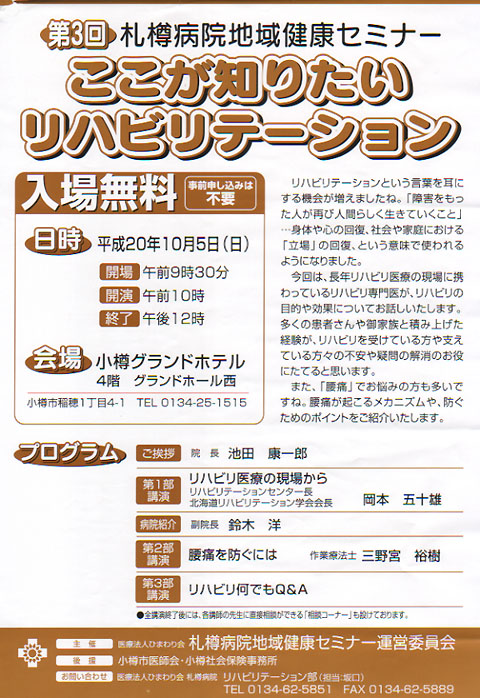 札樽病院地域健康セミナー ここが知りたいリハビリテーション