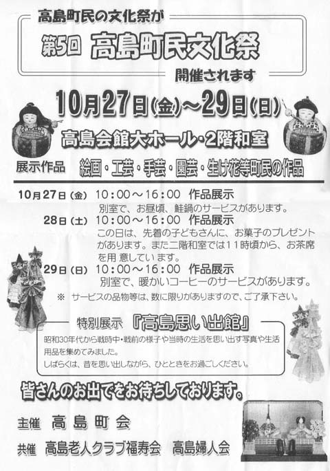 ☆第5回高島町民文化祭 10月27日(金)〜29日(日)