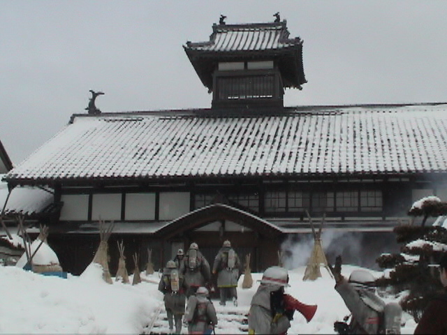 スルスルと伸びるハシゴ車からの放水。建物の望楼を高く超える一斉放水。1月26日は「第50回文化財防火デー」。高級旅館として有名な文化財的建物の「銀鱗荘」を火災から守る訓練が、26日(月)14:00から小樽市消防署や銀鱗荘の自衛消防隊の手で行われた。 文化財防火デーは、1949年(昭和24年)1月26日に、奈良の法隆寺から出火し、金堂の国宝の十二面壁画の大半を消失したことにちなむ。26日は、貴重な文化財を火災から守るための運動が、全国的に展開されている。 小樽では、平磯岬の高台に建ち、眼下に小樽港を一望する絶景のロケーションにある、高級旅館「銀鱗荘」(桜1-1)での文化財防火訓練。 「1月26日(月)14:00頃、内部改装中の銀鱗荘から出火。自衛消防隊による避難誘導・初期消火活動が行われたが、火勢は全館へ拡大。逃げ遅れた従業員が負傷し、救助を求めている」との想定での訓練。 小樽市消防署からハシゴ車・消防車など車両8台・27人の署員、小樽市消防団や銀鱗荘の自衛消防隊などが参加。 火災に伴う避難誘導・初期消火活動、消防隊の人命救助活動・放水による活動などが行われた。15mのハシゴ車や消防車からの一斉放水で、銀鱗荘のシンボル的存在である大屋根中央部の望楼も水煙に包まれた。建物の中から、消防署員に両脇を抱えられながら救出され、担架に乗せられる負傷者。状況を逐一本部に報告するきびきびした隊員の動き。小雪の中で行われた文化財防火デーは、「銀鱗荘」を火災から守ってこの日の訓練を終えた。 「銀鱗荘」は、ニシン漁で一代を築いた猪俣安之丞が、3年の歳月をかけて造った余市随一の大邸宅を、1938年(昭和13年)に移築した、規模雄大な木造建築。屋根に鯱が据えられ、特徴ある高い望楼を持つことで知られる。現在、銀鱗荘では、本館の隣りに鉄筋の新館を建築中だ。 |