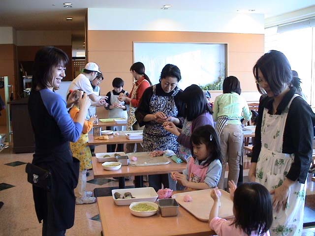 春休みの親子連れら21名の参加者が、慣れぬ和菓子作りに悪戦苦闘しながら、桜餅やうぐいす餅等の春の和菓子作りに挑戦した。今回のワークショップは、主に小学生が対象で、子供たちに和菓子を作る楽しさや素材、歴史などを紹介する試みで、めーでるライフ&クラフトワークショップセンターの主催。