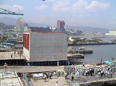 防波堤に使うケーソンの製作で、滑台方式で進水させるのは、大正元年に小樽港で行われ、世界でも例がない独特の方法だ。