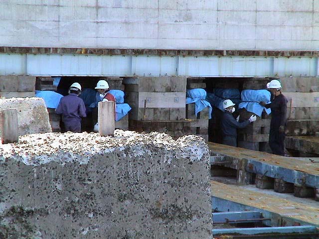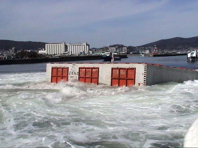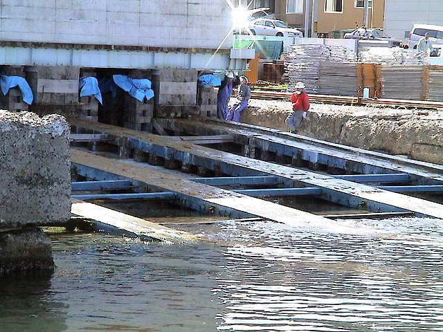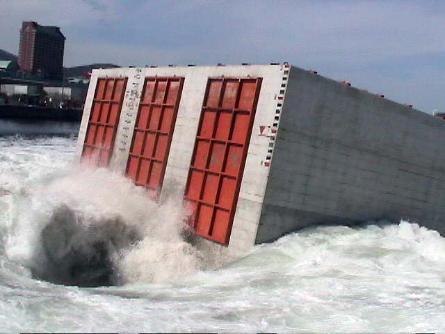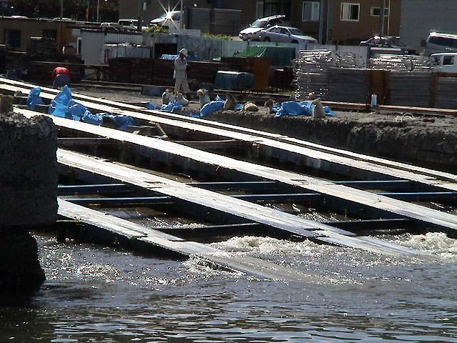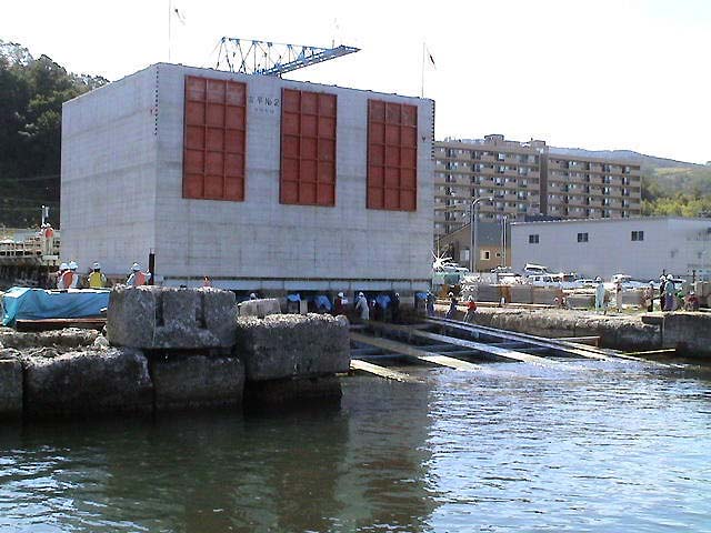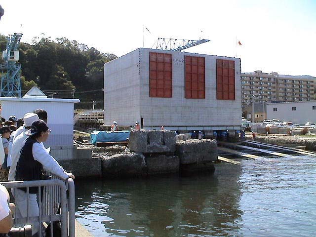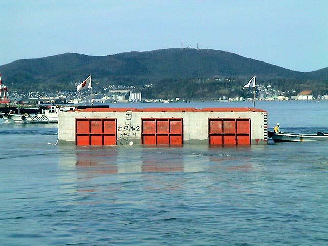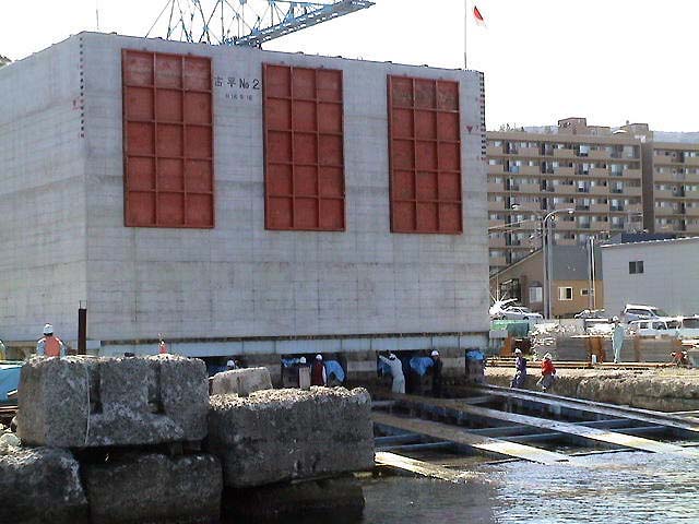 拍手と歓声と水しぶき!ケーソン進水の一般公開! 小樽港でしか見られない、港の防波堤の基礎部分とする巨大なコンクリート製の箱・ケーソンを、斜路(滑り台)を使って海中に落とす、迫力あるケーソン進水作業が、一般公開で9月26日(日)11:00から、小樽港湾事務所(築港2)で行われた。 長さ15m・幅13.2m・高さ9m・重さ1,340トン、ジャンボジェット機4基分もある巨大なコンクリート製の箱・ケーソンは、観客から選ばれた人の手でテープカットされ、ゆっくりと巨体を小樽港の海へ滑り落ちていった。 天気にも恵まれ、この日のケーソン進水の一般公開には、多くの観客が集まり、珍しい作業を見守った。斜路を滑り落ち、白波を上げて港内に進水すると、歓声と拍手が起こった。 札幌から来た初めて見る家族連れは、「あっという間の作業だったが、滅多に見られない光景にビックリした。迫力満点で見がいがあった」と大喜びだった。 小樽開発建設部のケーソン進水作業の公開は、今夏の7月30日にも行われていた。小樽の港湾土木技術力の高さを見せるケーソン進水は、100年も経った現在でも、道内では小樽港だけで行われている貴重なもの。 ◎動画 |