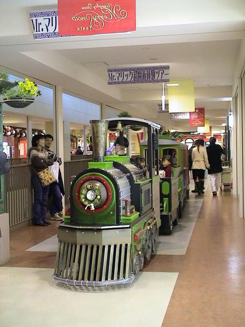 12月23日から、運行を始めた“ミニエキスプレス”は、ウイングベイの3階の超魔術マリック館と喜久屋書店の間のフロアを、人をかきわけてゆっくりと進む。汽笛の音に思わず振り返って眺める人や、手を振る人もいる。乗っている子供たちからも歓声が上がる。